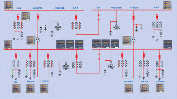 監(jiān)視整個系統(tǒng)運行,顯示實時數(shù)據(jù),通過主接線圖顯示開關(guān)狀態(tài)和負荷量。實時記錄報警信息,顯示負荷、電壓的曲線、裝置運行狀態(tài)等。遙測量越限監(jiān)視、遙信變位報警,事故信號及預(yù)告信號等擁有聲、光、色告警。監(jiān)控界面通過遙控、遙調(diào)命令對開關(guān)、斷路器等控制對象進行遠程遙控。具有人工置數(shù)和掛牌功能,方便設(shè)備安裝、調(diào)試、維護。