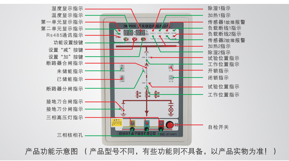 工作位置觸點閉合時,紅色垂直模擬條點亮,顯示斷路器位于工作位置;試驗位置觸點閉合時,綠色水平模擬條點亮,顯示斷路器位于試驗位置。