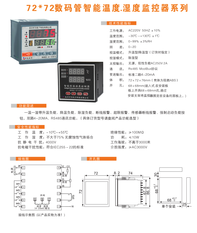 4.除凝露型:當(dāng)測量濕度值大于88%RH時,啟動除凝露負(fù)載,當(dāng)測量濕度小